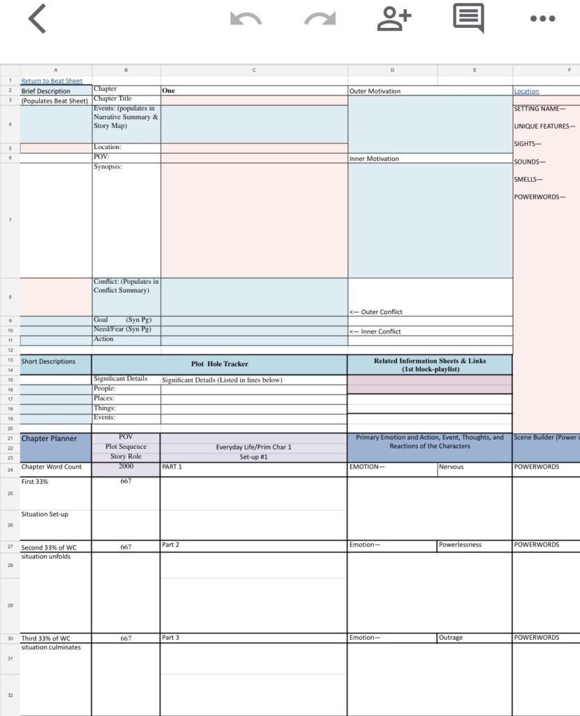To plan how I do this in each chapter, I use the following sheet in the workbook I put together to craft stories for my ghostwriting clients. Escalating the emotional content of a chapter automatically ratchets the tension.