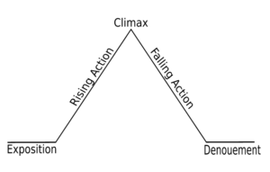 Freytag’s Five Parts of Dramatic Structure[/caption]When the German playwright and novelist Gustav Freytag analyzed Greek and Shakespearean dramas he discovered this five part structure in action. He called the five parts exposition, rising action, climax, falling action, and dénouement/resolution/revelation/catastrophe.[3]